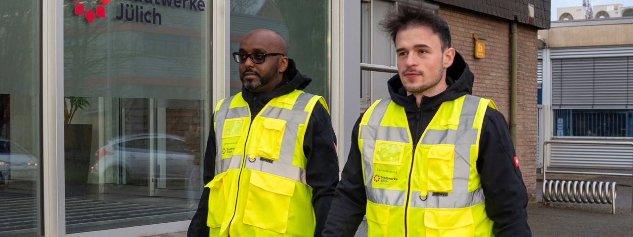 Unsere Ableser sind leicht zu erkennen: Sie tragen gelbe Warnwesten mit der Aufschrift „Zähler-Ablesung“ und führen einen Ableseausweis mit Foto sowie ihrem Vor- und Nachnamen mit sich. Sollten Sie unsicher sein, können Sie die Identität des Ablesers jederzeit durch einen Anruf bei unserem Kundenservice unter 02461 625–122 überprüfen lassen.